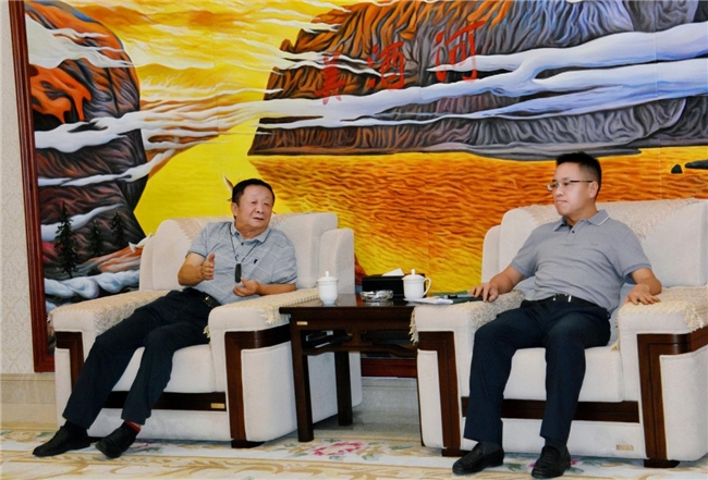 图为:仁怀市人民政府副市长杨云飞(右)与中天行集团董事长刘伟一(左)座谈